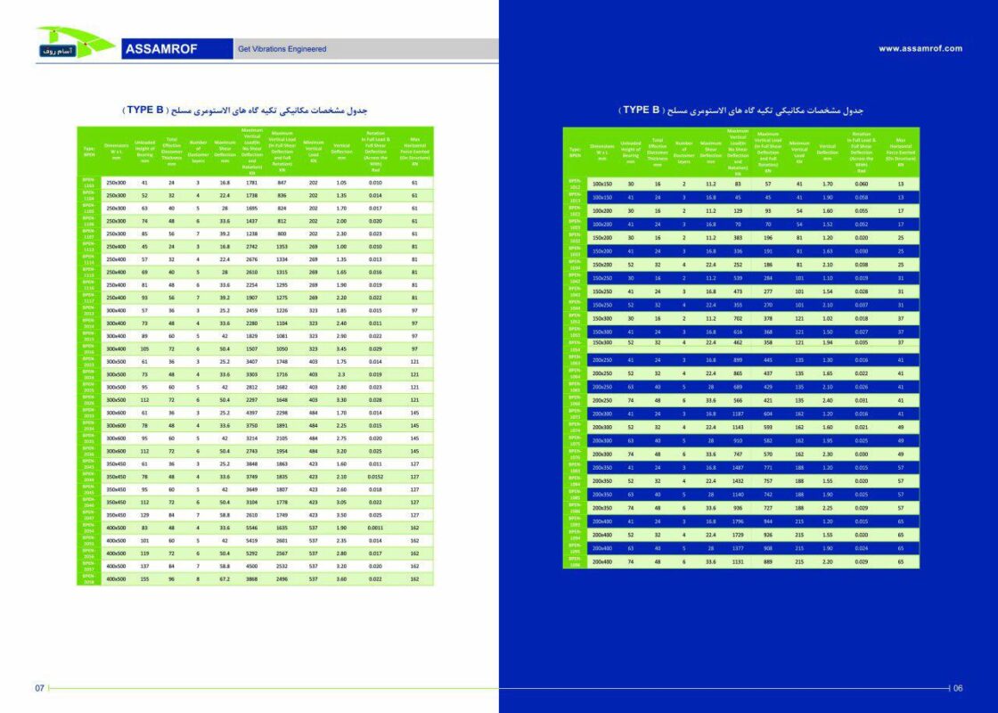 این شرکت مفتخر است اعلام نماید که کلیه محصولات آن توسط متخصصین و مهندسین ایرانی طراحی و تولید میگردند و آماده میباشد تا در زمینۀ انجام محاسبات و طراحی قطعات با تمامی شرکت ها و مهندسین مشاور محترم همکاری نماید . معرفی تیپهای بالشتکهای زیر سری پل که در شرکت آسام روف تولید میگردد :